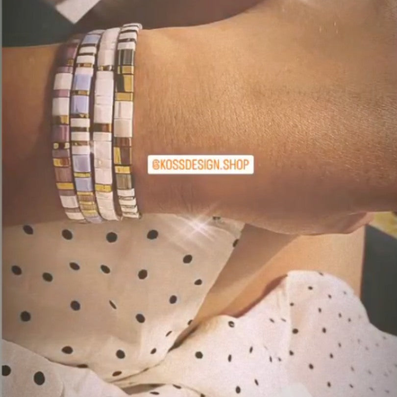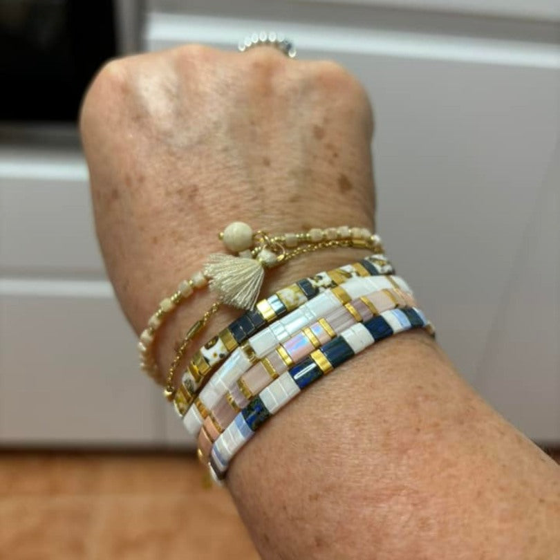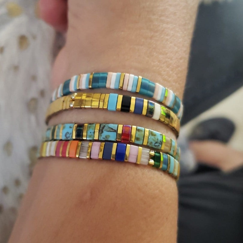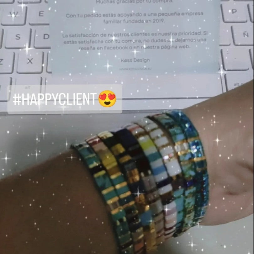 Contas de vidro japonesas autênticas (60 por pulseira) e aço inoxidável