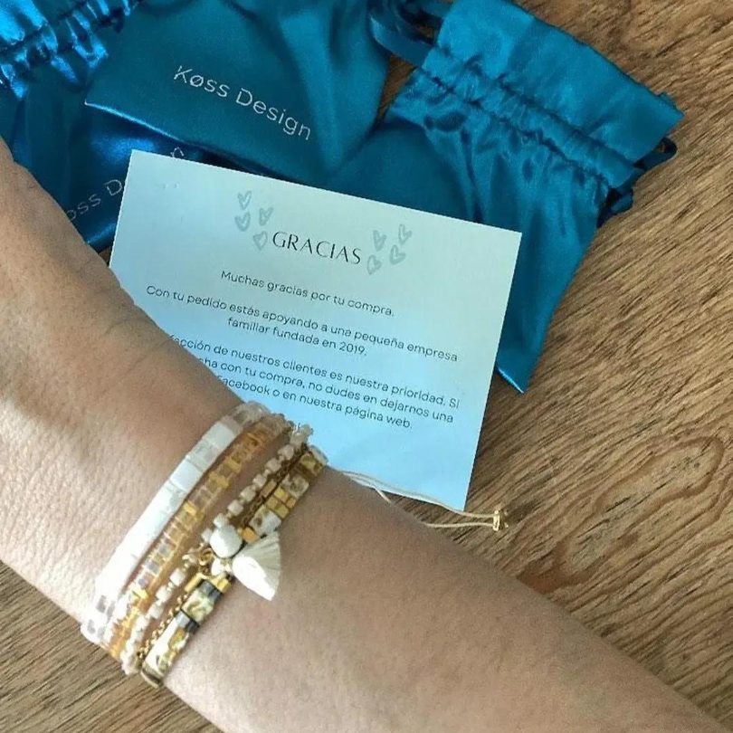 Embalagem cuidadosa: cada pedido contém um ou mais sacos de cetim Køss Design únicos, ideais como prenda ou mimo.