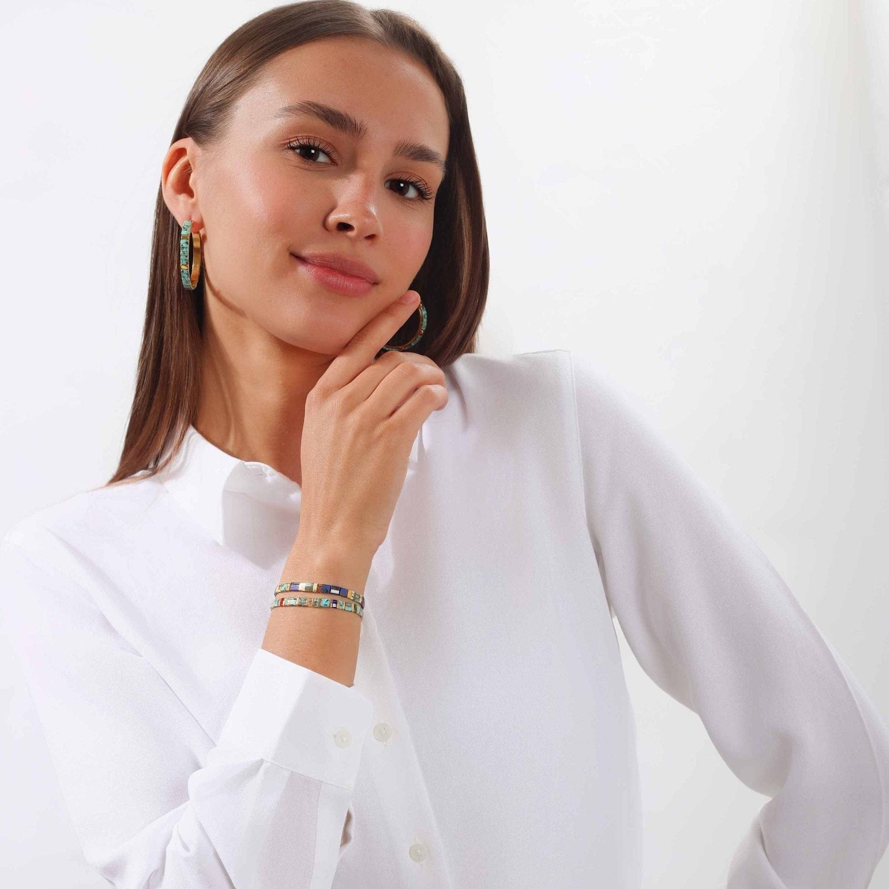 Chaque pièce est réalisée à la main avec des perles japonaises Miyuki authentiques et de l’acier inoxydable plaqué or, reconnus pour leur éclat durable.