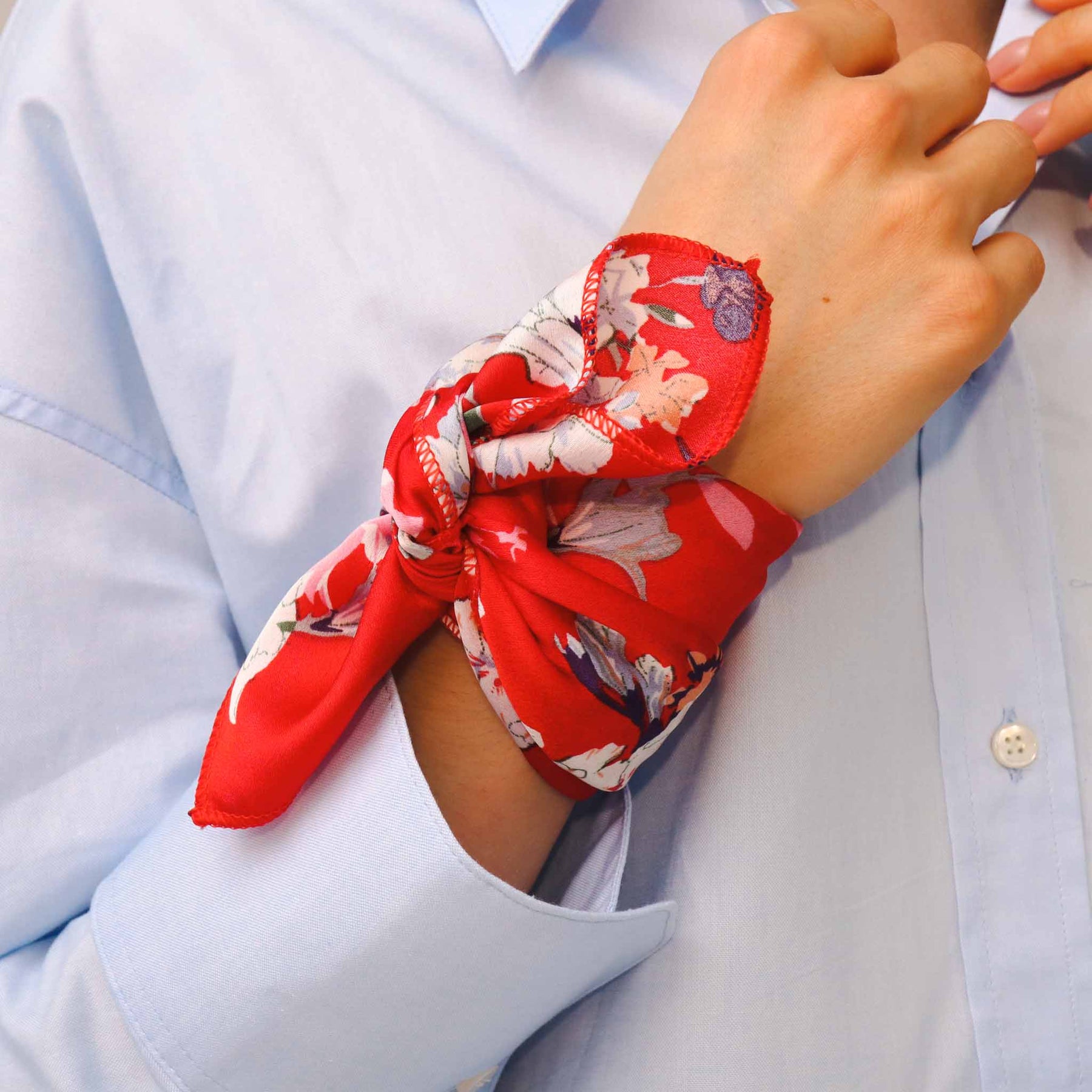 Este nuevo cuadrado de Køss Design está hecho de seda. Es un accesorio intemporal para el vestuario femenino, la pulsera puede llevarse alrededor de la muñeca, en el cuello, como banda alrededor del bolso o en el pelo.