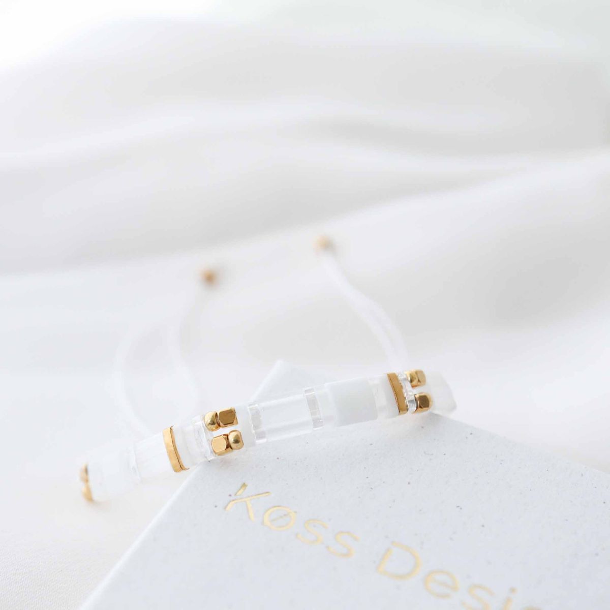 Esta pulsera única de Køss Design está hecha con piedras japonesas. Preciosa sola o combinada con otras pulseras de cuentas. Crea tu propio estilo seleccionando otras pulseras. Consigue un look único que combinará perfectamente con tus conjuntos, ya sean de vestir o más informales. Viene con una bolsa de satén Køss Design.