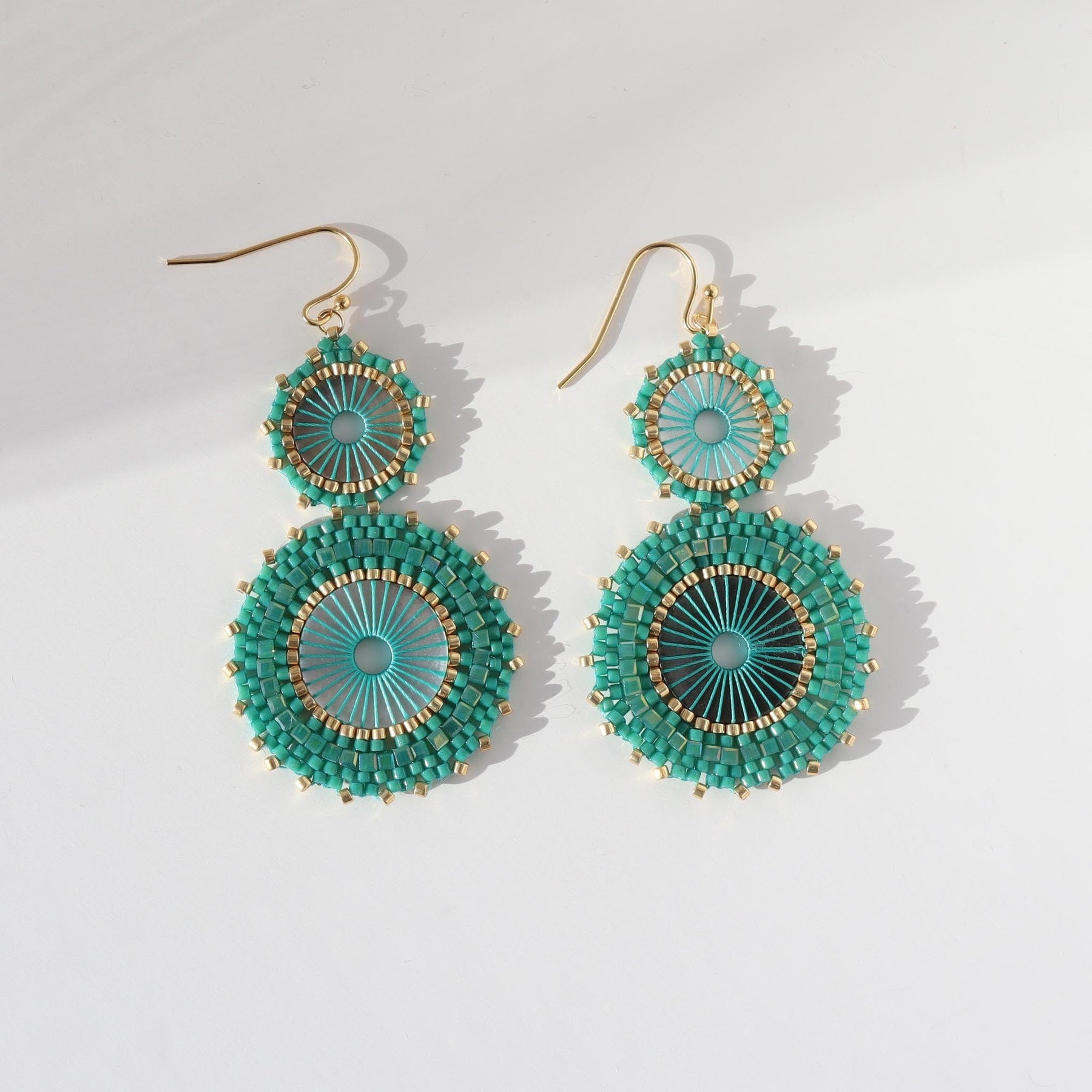 Les boucles d'oreilles vertes Mya, élégantes et raffinées, sont fabriquées avec des perles en verre Miyuki du Japon.