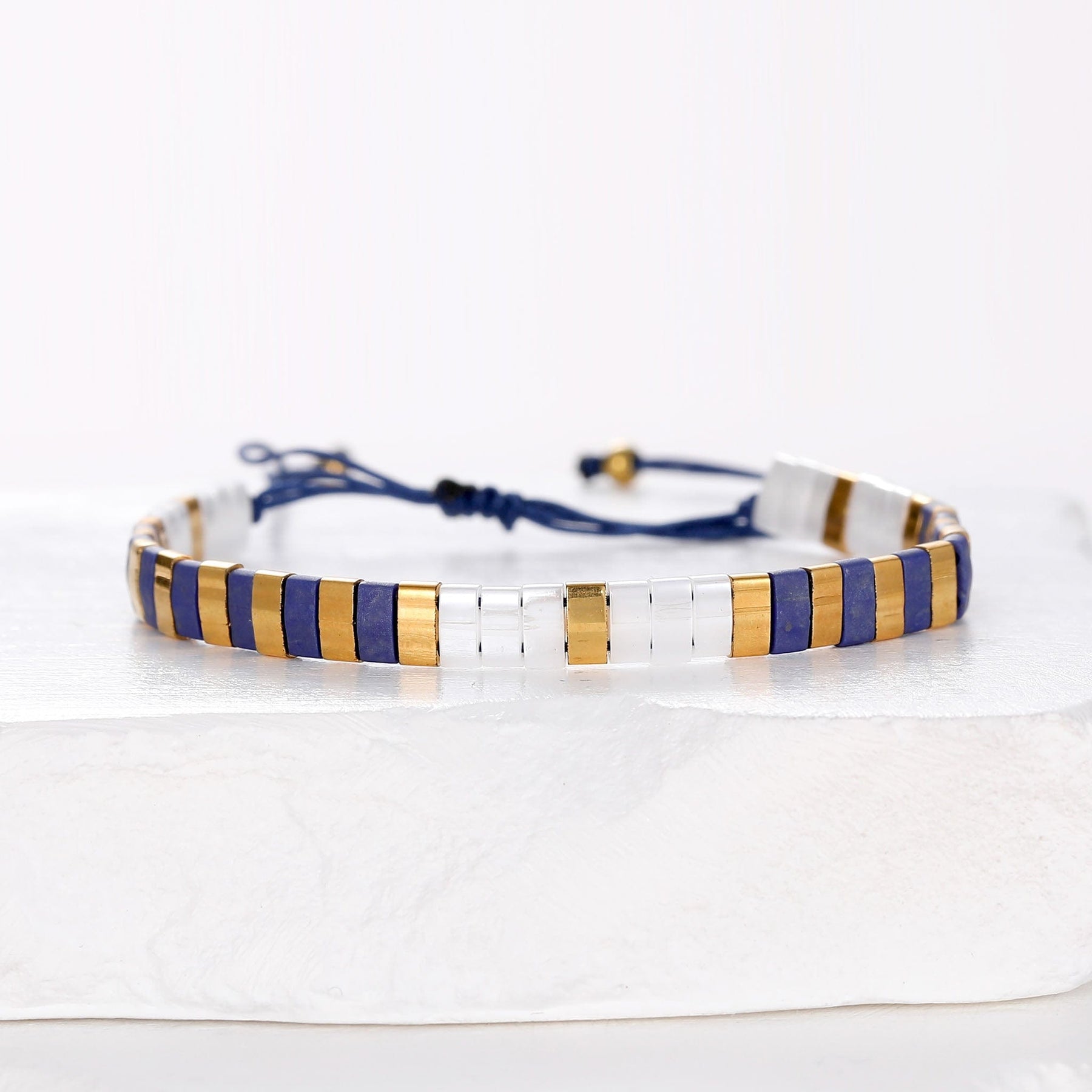 Esta pulseira da Køss Design é feita com faixas elásticas suaves, cravejadas com uma sucessão de pedras japonesas. É uma pulseira muito versátil, perfeita para usar sozinha ou combinada com outras pulseiras. Crie seu próprio estilo e selecione outras pulseiras. Ela cria um visual único que complementa a perfeição de qualquer look, seja ele elegante ou informal. Acompanha uma bolsa de couro sintético da Køss Design.