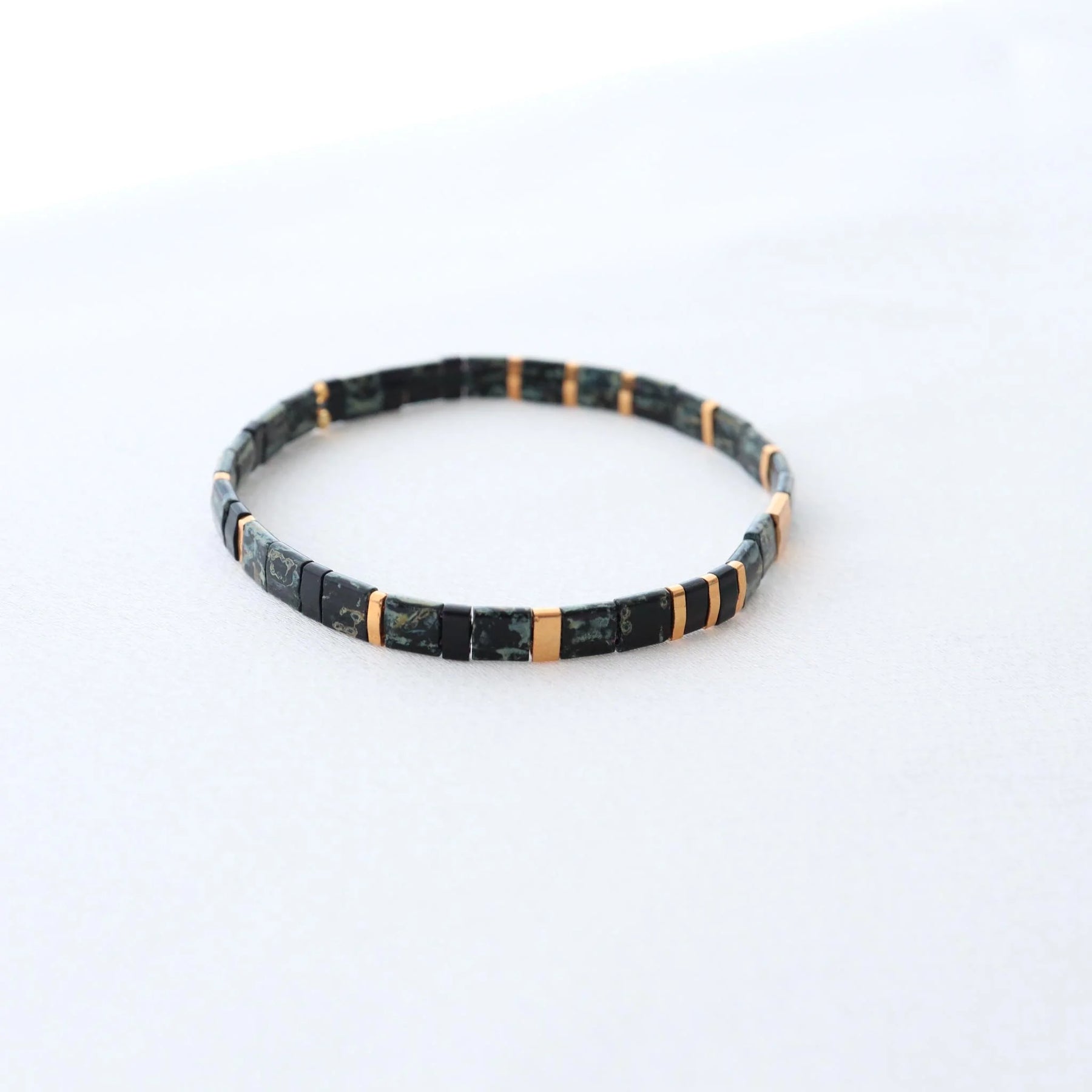 Cuentas de vidrio japonesas (60 por pulsera), piedras naturales (30 por pulsera) y acero inoxidable chapado en oro