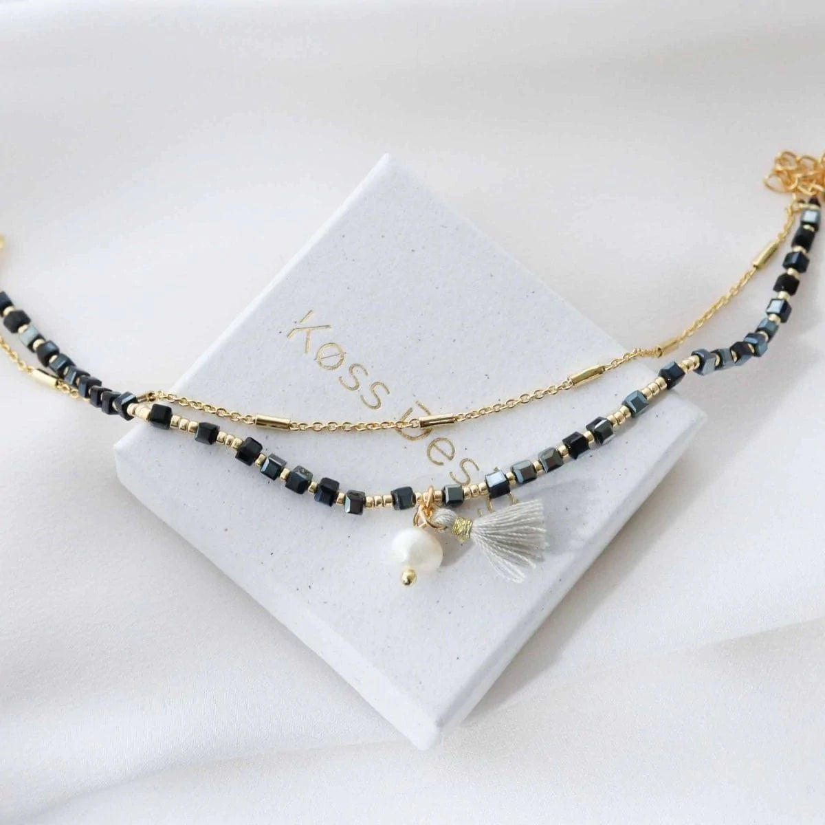 Este conjunto exclusivo da Maya de Køss Design contém duas pulseiras Elia e Moko. Pulseiras feitas com pedras japonesas. Preciosas, individuais ou combinadas com outras pulseiras. Criam um visual único que complementa perfeitamente todos os seus looks, mesmo os mais informais. Acompanha uma bolsa Køss Design.