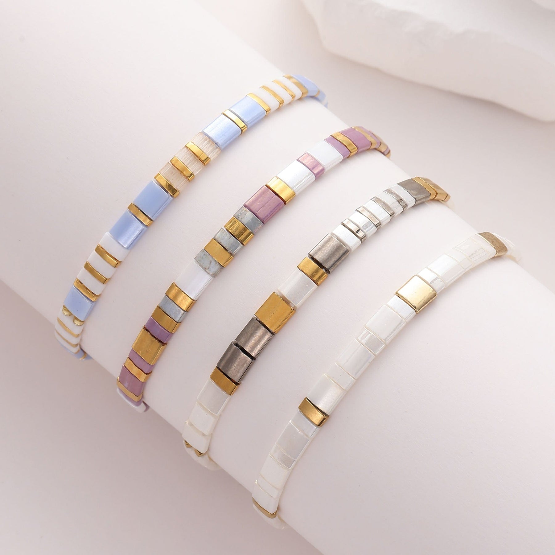Este conjunto único Pastel de Køss Design contiene nuestras pulseras Clea, Sky, Lea & Cilla, hechas con piedras japonesas.