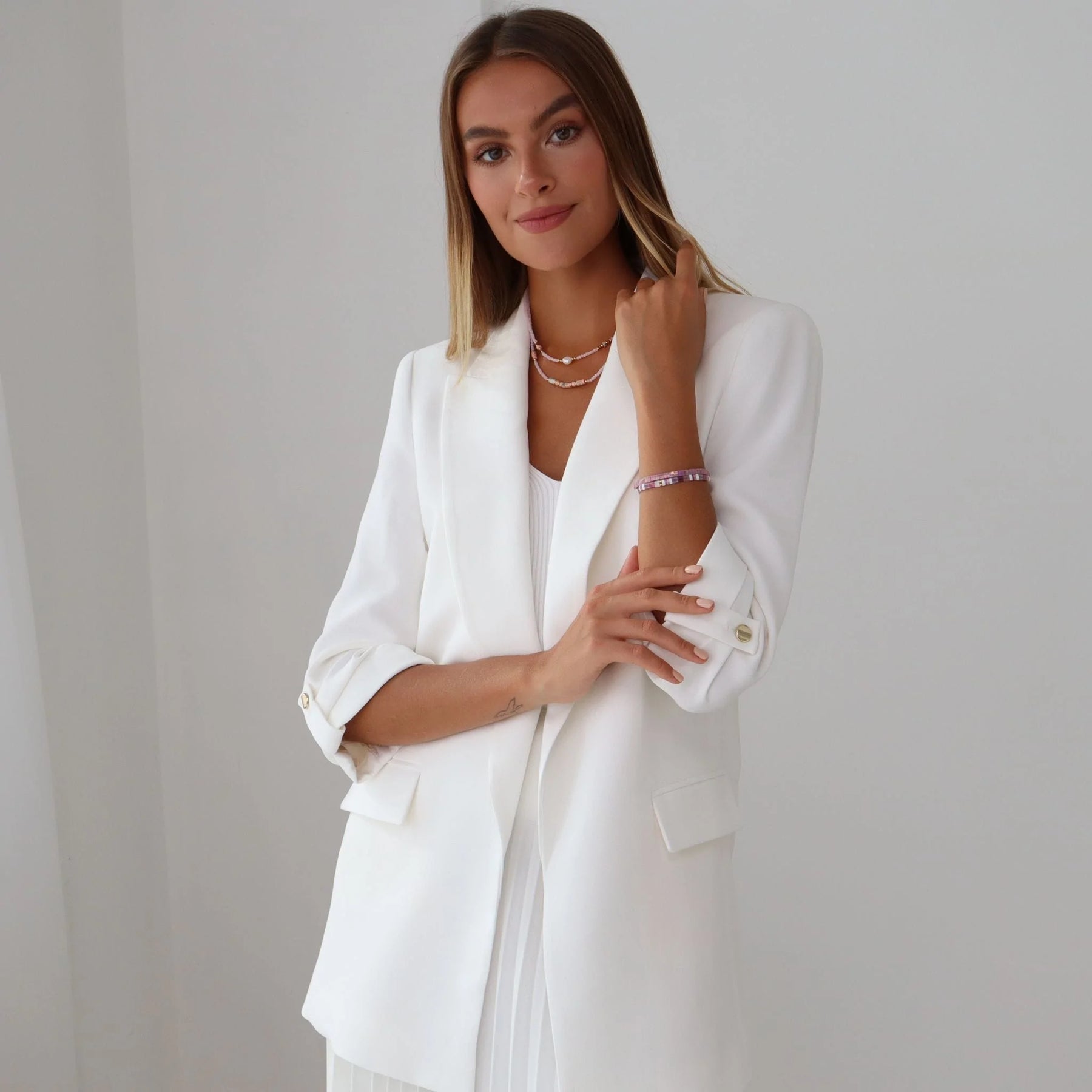 Este conjunto único de color lavanda de Køss Design contiene nuestras pulseras Lavanda & Violeta, hechas con piedras japonesas.