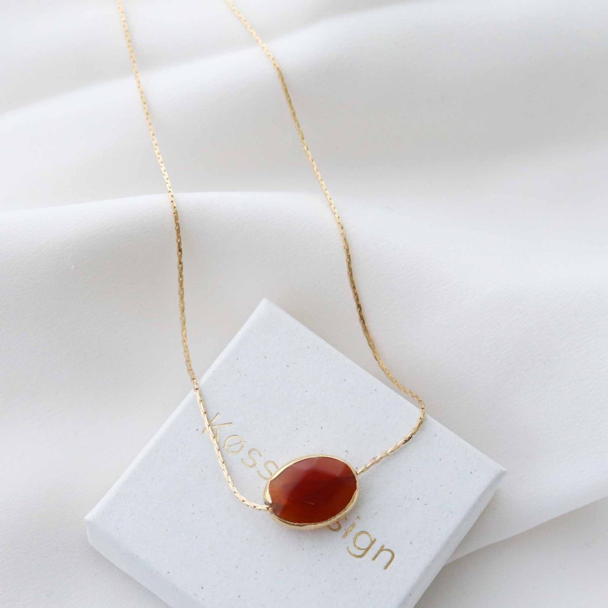 Este pendente único de Nia da Køss Design é feito de pedra semipreciosa. Pode ser usado como um gargantilha ou mais comprido.