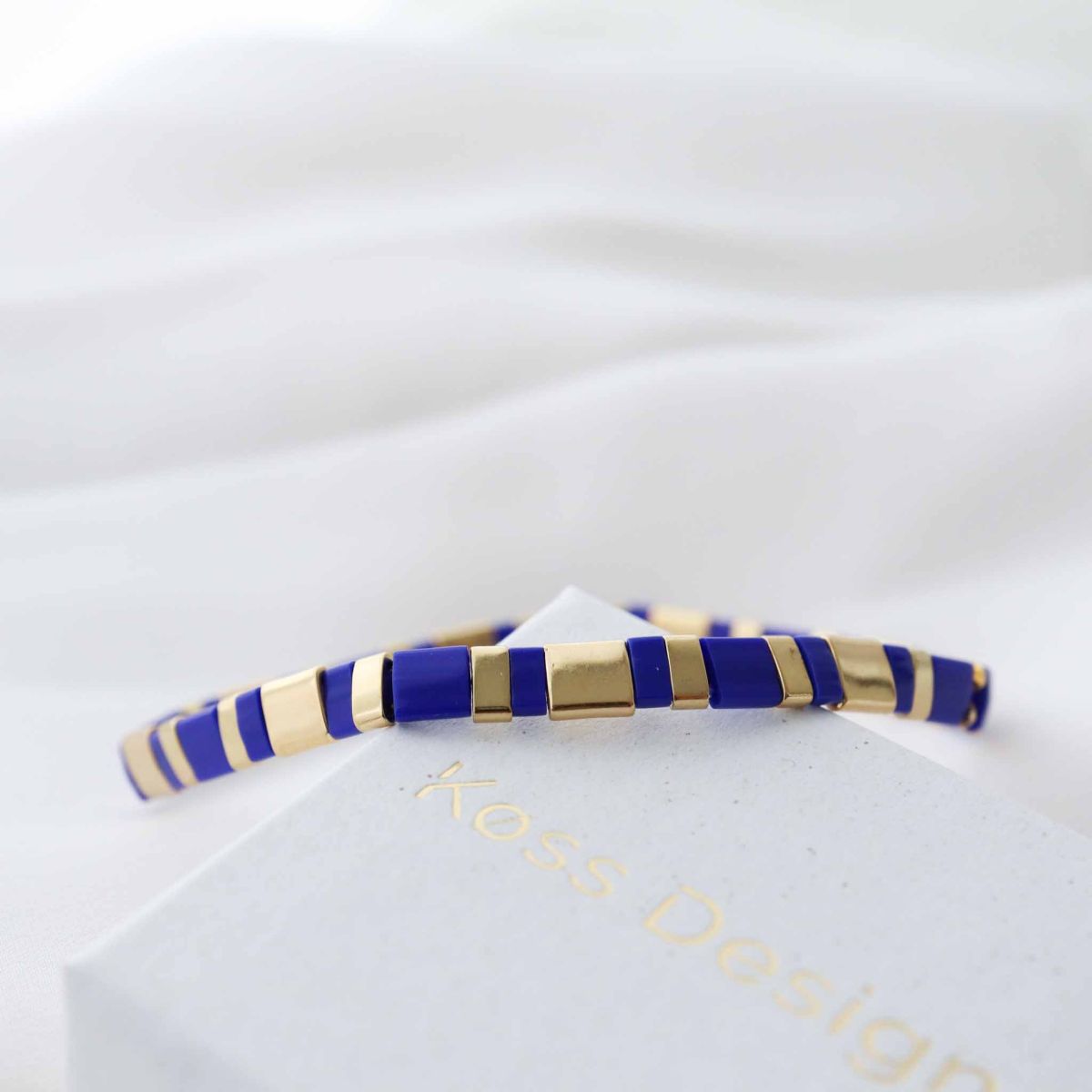 Esta pulseira Eøli única da Køss Design é feita de elásticos macios, nos quais são enfiadas uma sucessão de pérolas japonesas, por vezes de vidro colorido, por vezes douradas. É uma bela pulseira, quer por si só, quer em combinação com outras pulseiras de pérolas. Crie o seu próprio estilo, selecionando outras pulseiras. Obtenha um visual único que irá complementar perfeitamente qualquer roupa, seja ela formal ou casual. Vem com uma bolsa de veludo da Køss Design.