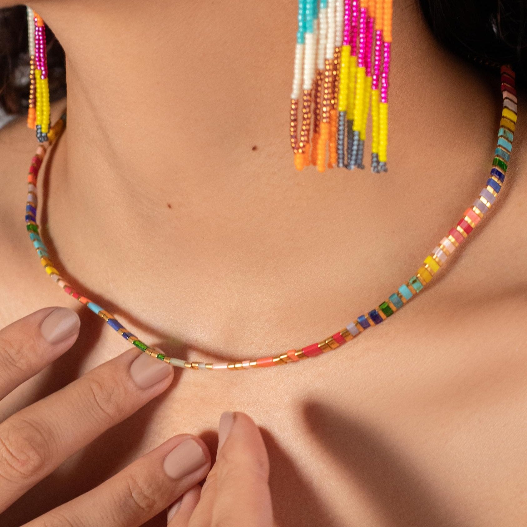 La mayoría de las marcas bohemias ofrecen diseños predecibles con piedras redondas. En Koss Design, ofrecemos algo diferente: nuestras piedras planas certificadas Miyuki son modernas, elegantes y de un estilo distintivamente chic. Diseñadas para cualquier ocasión—trabajo, deporte o una noche especial—son ligeras, cómodas y aportan un toque refinado. Con nosotros, estilo, modernidad y funcionalidad se combinan a la perfección.
